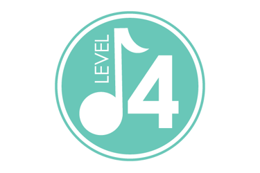 A Level 4 class focuses on basic musical symbols, complex instruments, and more in-depth movement games. Children begin to master new music terms and concepts, and ready themselves for elementary math, reading, and writing. Caregivers join a portion of each class to participate in the music-making.