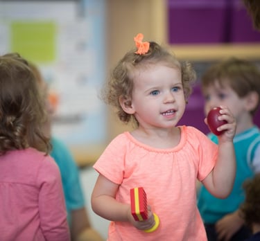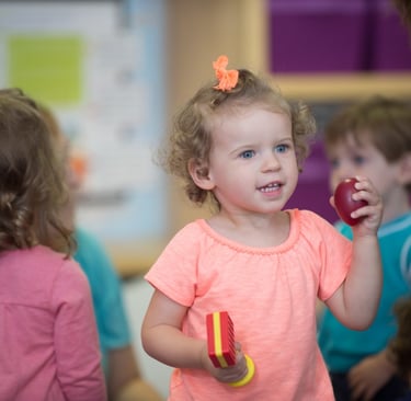 You will find so much joy in this active class as you watch your child who is beginning to walk, talk, sing, play, clap, tap, and dance---all on their own! Throughout each class, your Kindermusik teacher will give little tips to create daily routines with music.