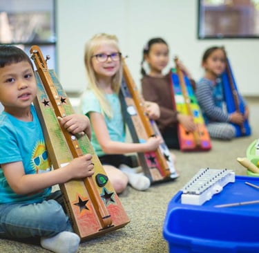 Building on Year 1, children deepen their understanding of musical notation, harmony, and composition with the use of a dulcimer and recorder. Music and instruments from around the world are explored. Year 2 strengthens musical confidence and prepares students for private lessons or school music programs. Weekly at-home activities and instrument practice are essential for success in this class.Caregivers join a portion of each class to participate in the music-making.